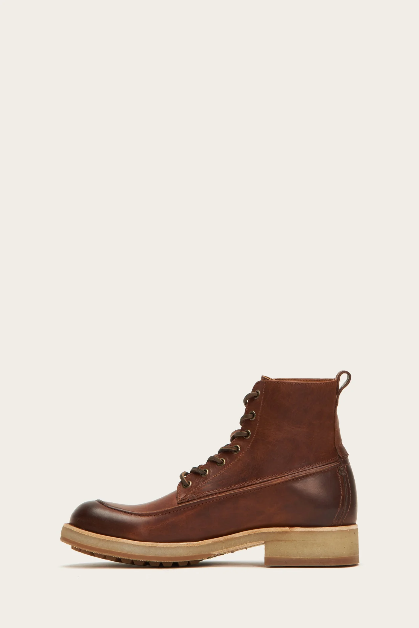 The Rainer workboots are an investment in an expertly crafted hard-wearing antiqued pull-up Italian leather design. This lace-up pair is finished with a sturdy pull tab, making them easier to get on and off, Blake stitching, moc toe and a crepe midsole for added comfort. - Italian Leather
